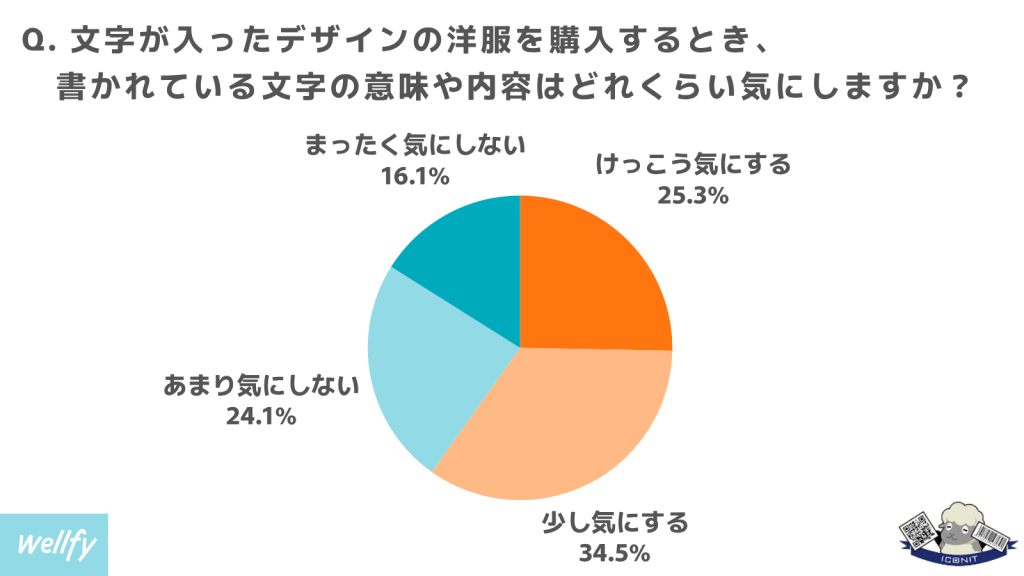 まず、「文字入りデザインを買うとき、書かれている文字の意味を気にしますか?」と聞いたところ、