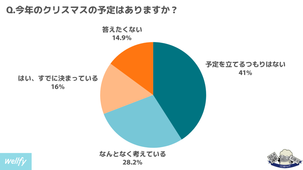 20〜30代女性に「今年のクリスマスの予定」について聞いたところ、もっとも多かった回答は「予定を立てるつもりはない」(77人/41%)でした。