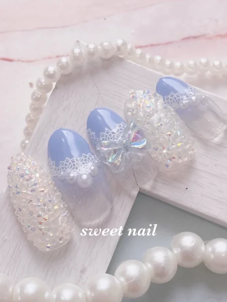レースとアイシーなブルーは、清楚な雰囲気を引き上げます。