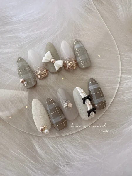 5位 : 控えめなリボンネイル