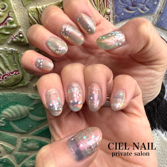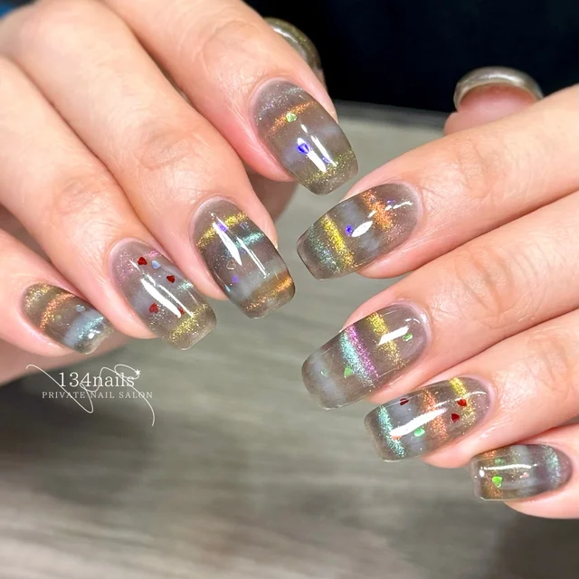 左右でカラーを変え、ホログラムを無造作に置けば、自然体な雰囲気でいっぱいに◎