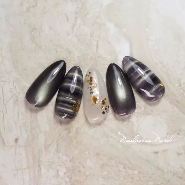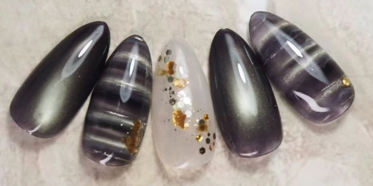 9位 : 大人っぽく輝くボーダーマグネットネイル