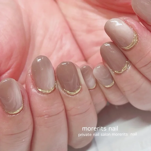 ナチュラルで親しみやすい、淡いトーンのブラウンネイル♪