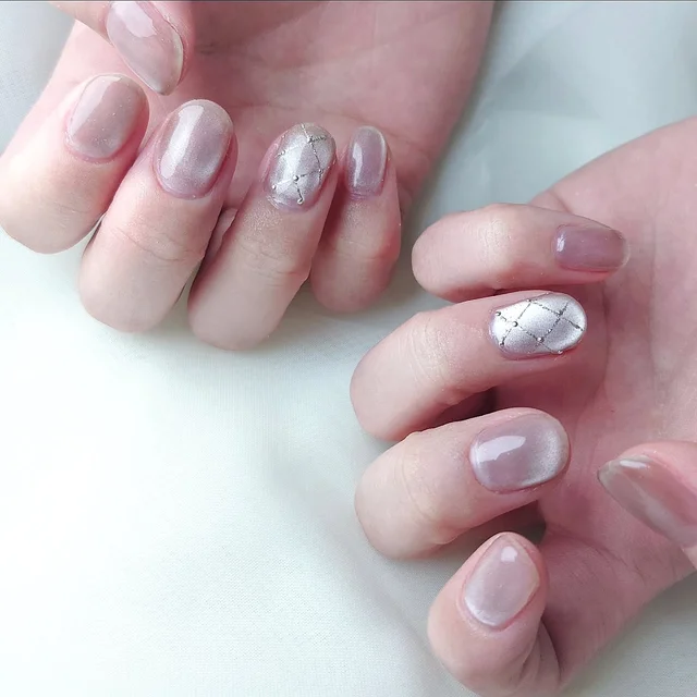 ラメを使って華奢なチェックを描けば、ほんのりガーリーに♡