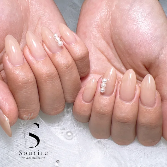 澄んだ発色のベージュネイルで、肌をトーンアップした印象にチェンジ◎